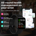 - 【Blood Oxygen & Heart Rate & Sleep Monitoring】The smart watch for men uses an advanced sensor chip and a photoelectric sensor for accurate monitoring. It provides 24-hour continuous measurement of your health indicators (SpO2, heart rate, and stress), as well as women's menstrual cycle reminders. In addition, smart watch men automatically monitors your sleep status (deep sleep, light sleep, waking up) and provides a comprehensive sleep quality analysis, so better sleep starts now.